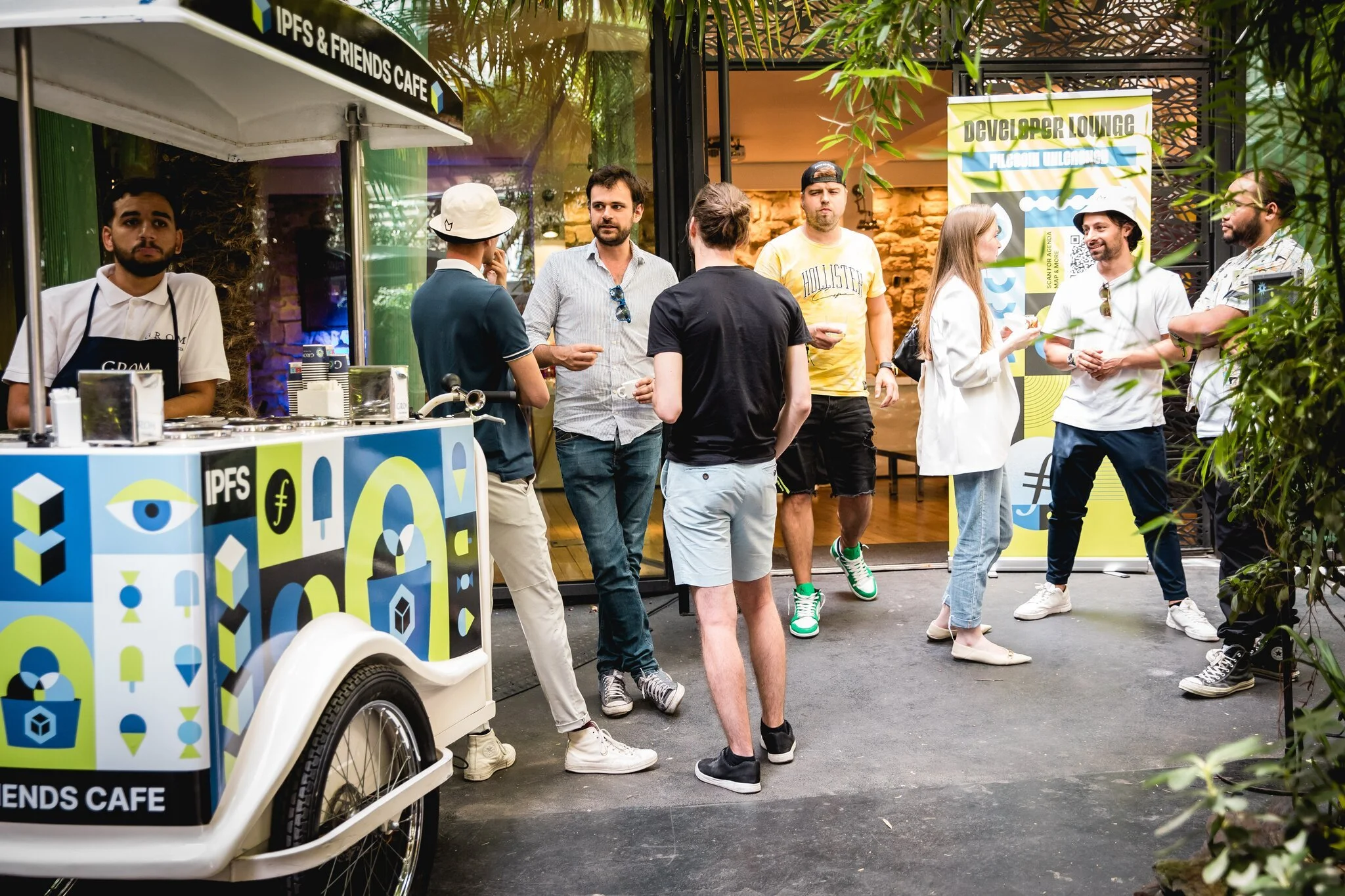Hundreds of developers and fans immersed themselves in this bespoke-branded space in July of 2023, to learn more about the future of the decentralized web. Seamlessly branded collateral included social animations, registration website, digital templates, on-site-customized merch, posters, wayfinding, floor and window decals, staging, and much more, all created under my direction.